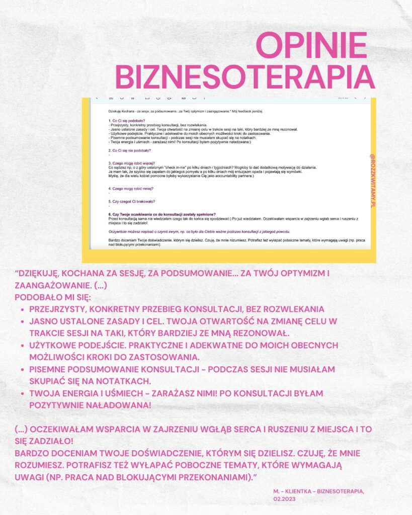• Samo podjęcie decyzji o konsultacji wzmacnia Twoją sprawczość. Może być wyrazem miłości do samej siebie – decydujesz się w końcu na inwestycję w swój biznes – ale to z Tobą pracuję, więc jest to bez dwóch zdań inwestycja w CIEBIE♥️!